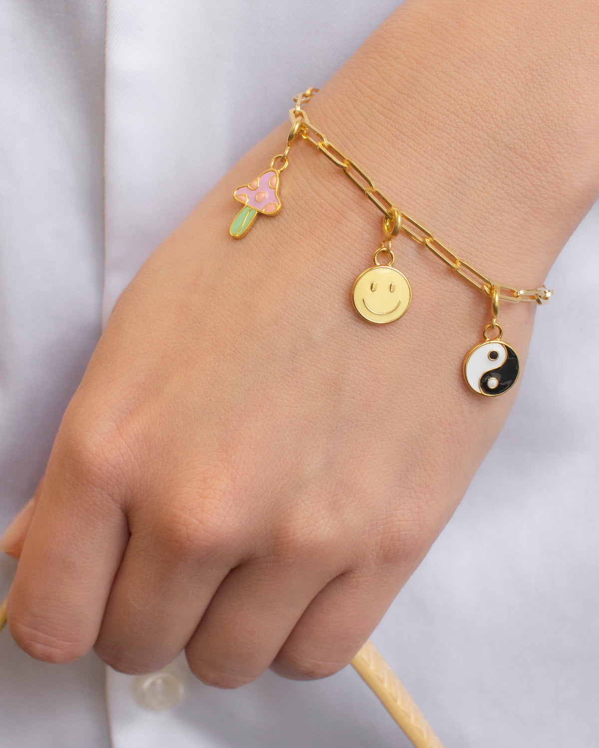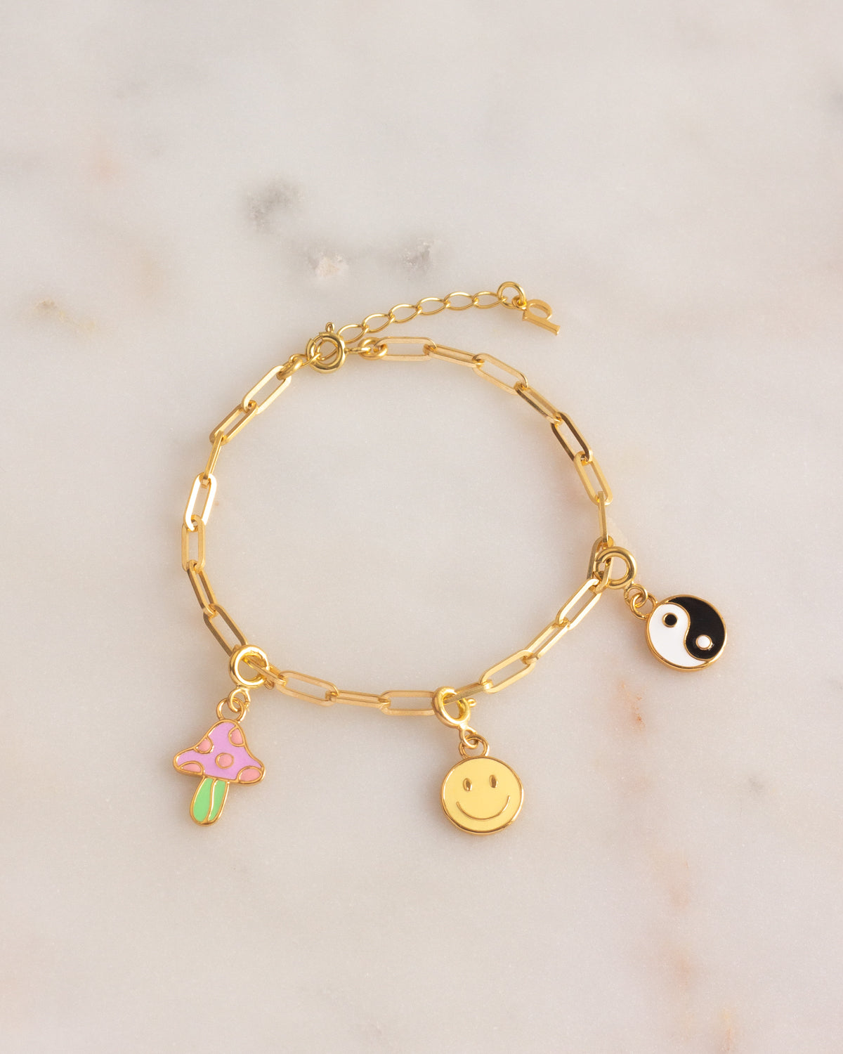 A versatile and timeless Link Chain Bracelet made from Gold Vermeil paired with hand-poured enamel charms. You can wear it two ways: As a base to stack your favorite Charms or classic on its own.