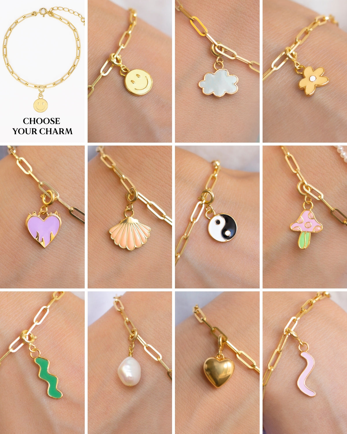 Included in this set is a Link Chain Bracelet and one charm of your choice! This is the perfect set to start your journey of collecting charms. The Link Chain Bracelet is the perfect base to attach your favorite charms but you can also wear it solo for a more classic look. Of course you can also attach the charm on any other bracelet or necklace. Happy collecting!