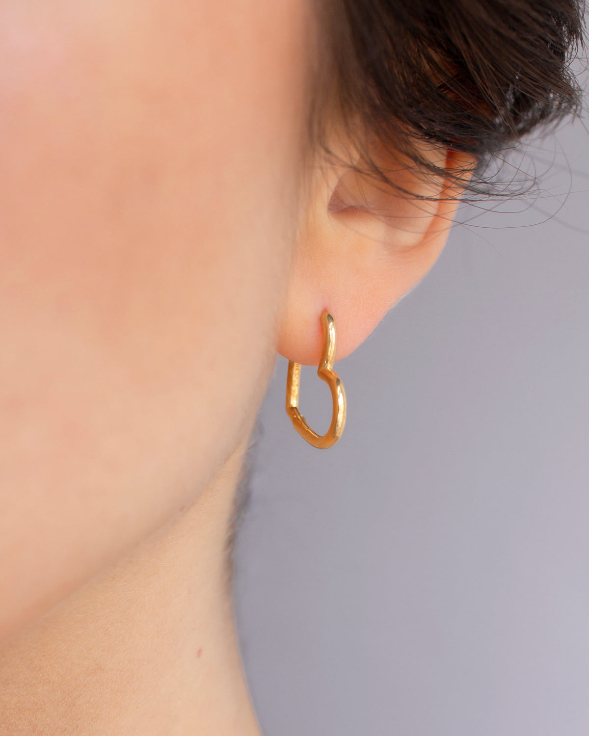 Introducing our charming Heart-shaped Hoop Earrings, the perfect blend of love and style. Crafted with care from Gold Vermeil, these earrings are a symbol of affection and elegance. Whether you're dressing up for a special occasion or adding a playful touch to your everyday look, our Heart-shaped Hoop Earrings are the perfect choice.