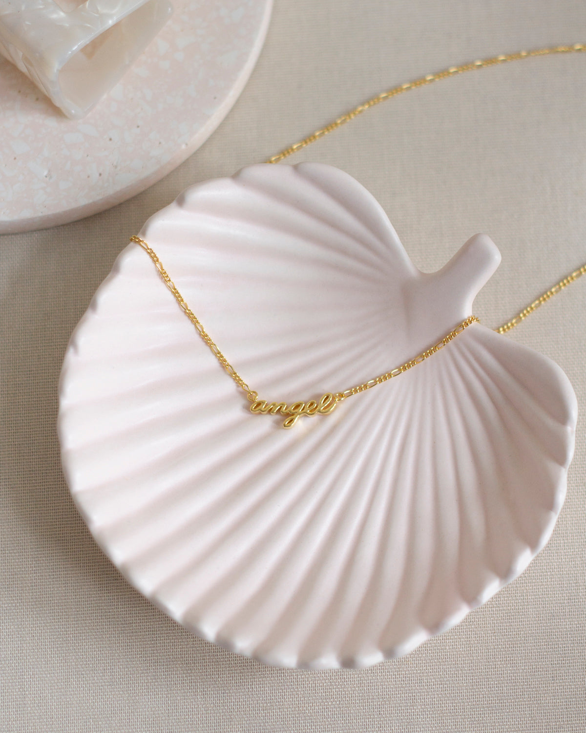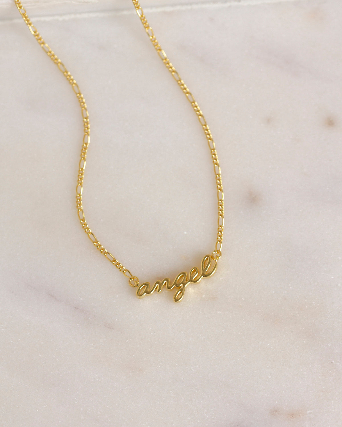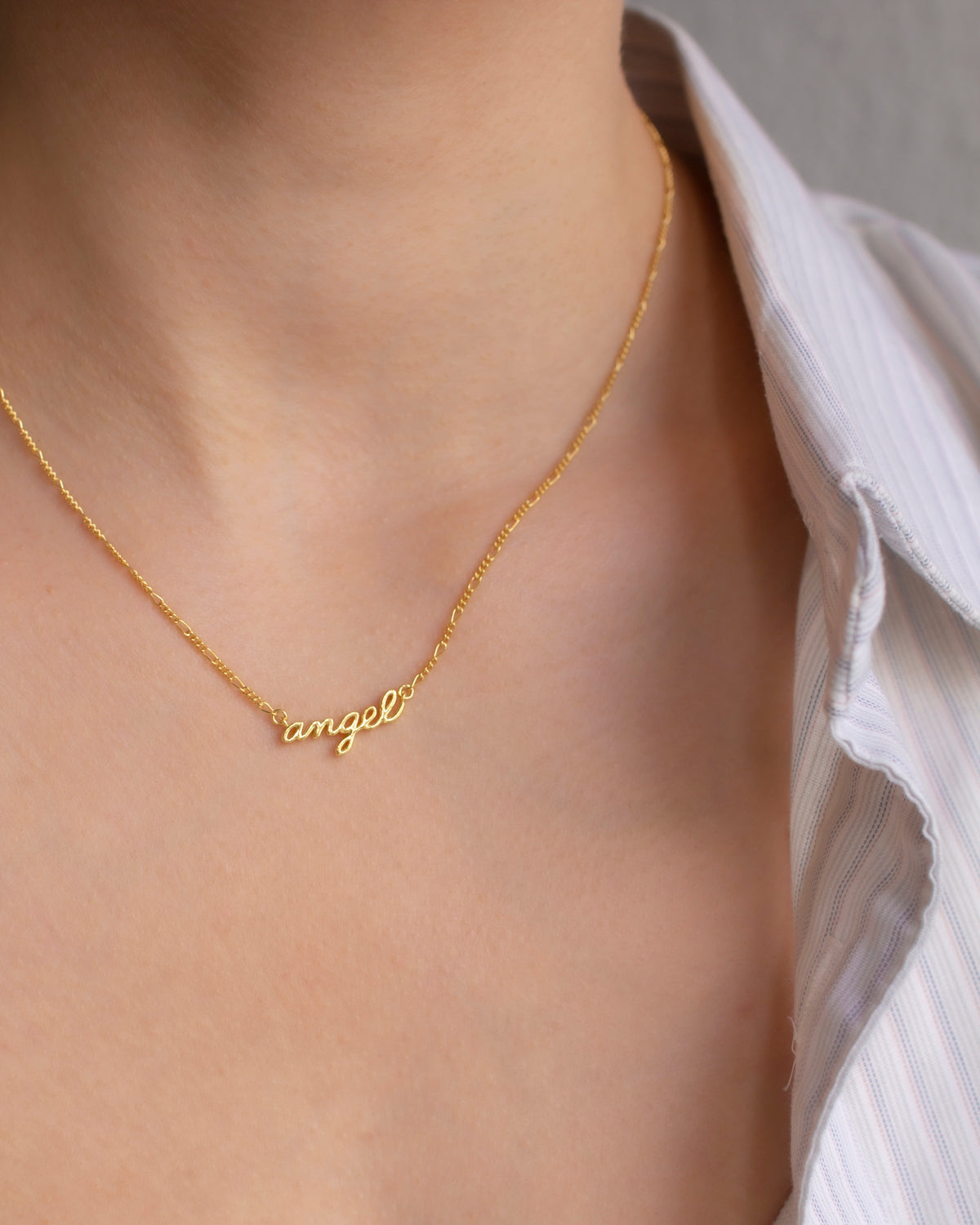 Elevate your spirit with our Angel Necklace! This stunning piece boasts a charming pendant inscribed with 'angel,' radiating positivity and grace. Crafted with care, it's a heartfelt accessory that adds a touch of divine elegance to any outfit, reminding you of your inner beauty and kindness.