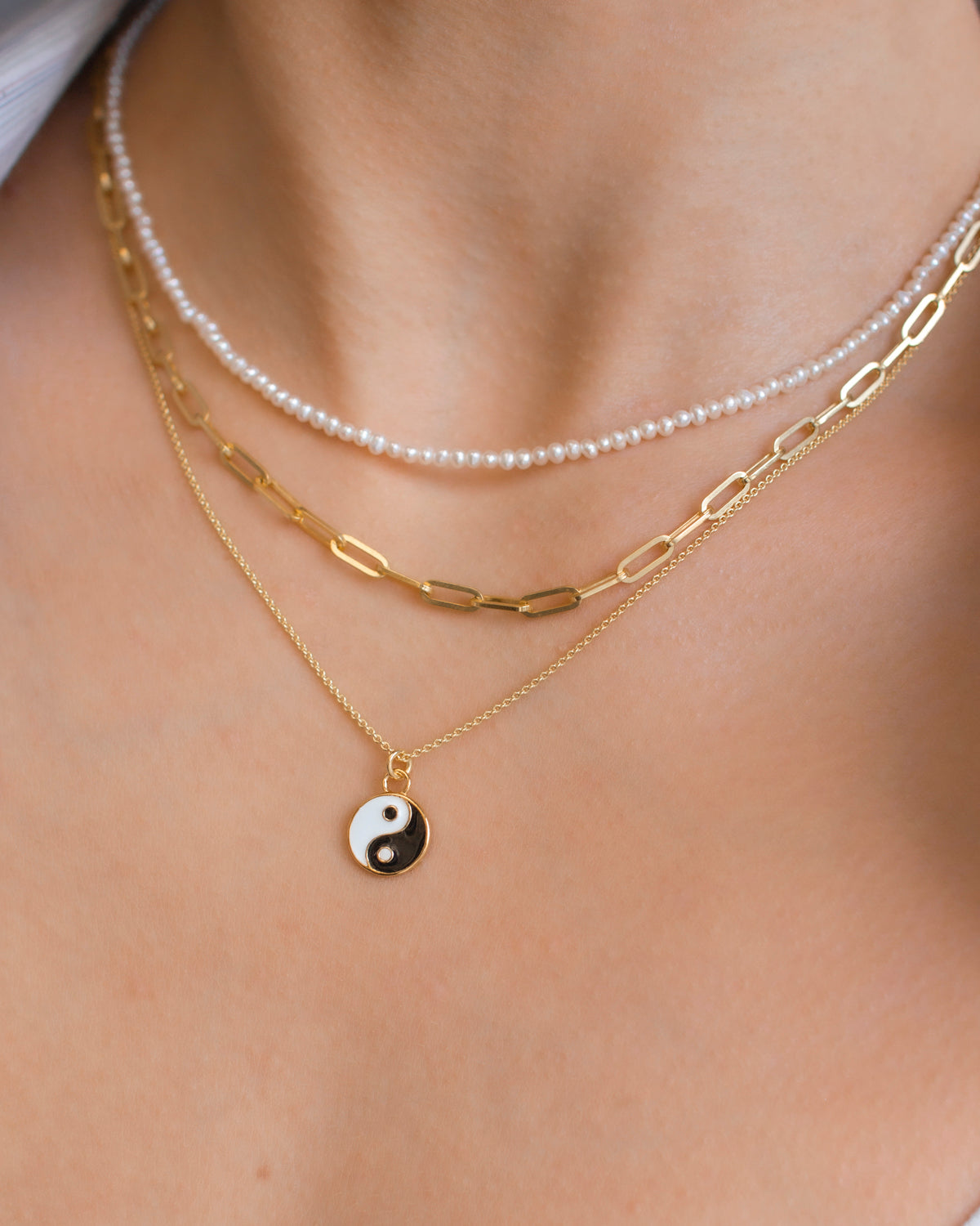 Enjoy the balance of this black & white classic. A dainty chain made from Gold Vermeil paired with a hand-poured black & white Yin Yang enamel Charm. Perfect to wear on its own or stack with your favorite pieces.