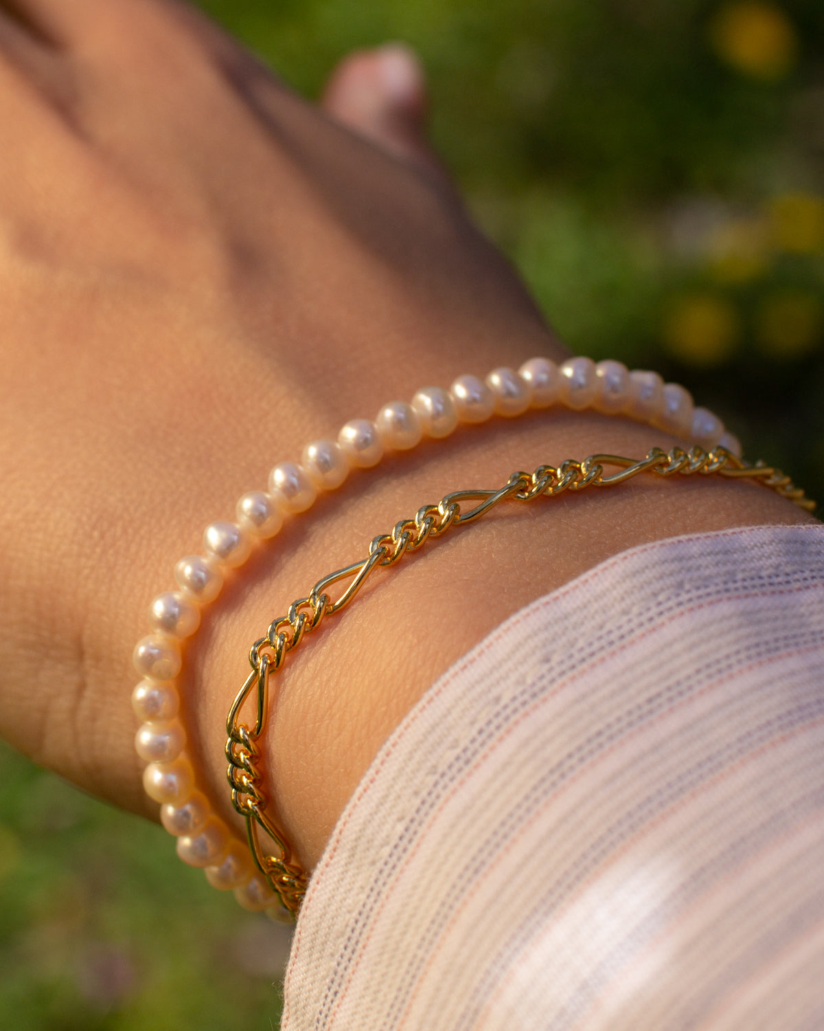 Da unser Gold-Vermeil-Schmuck wasserresistenter ist als normale Vergoldung, ist es in Ordnung, wenn dein Schmuck hin und wieder mit Wasser in Berührung kommt.