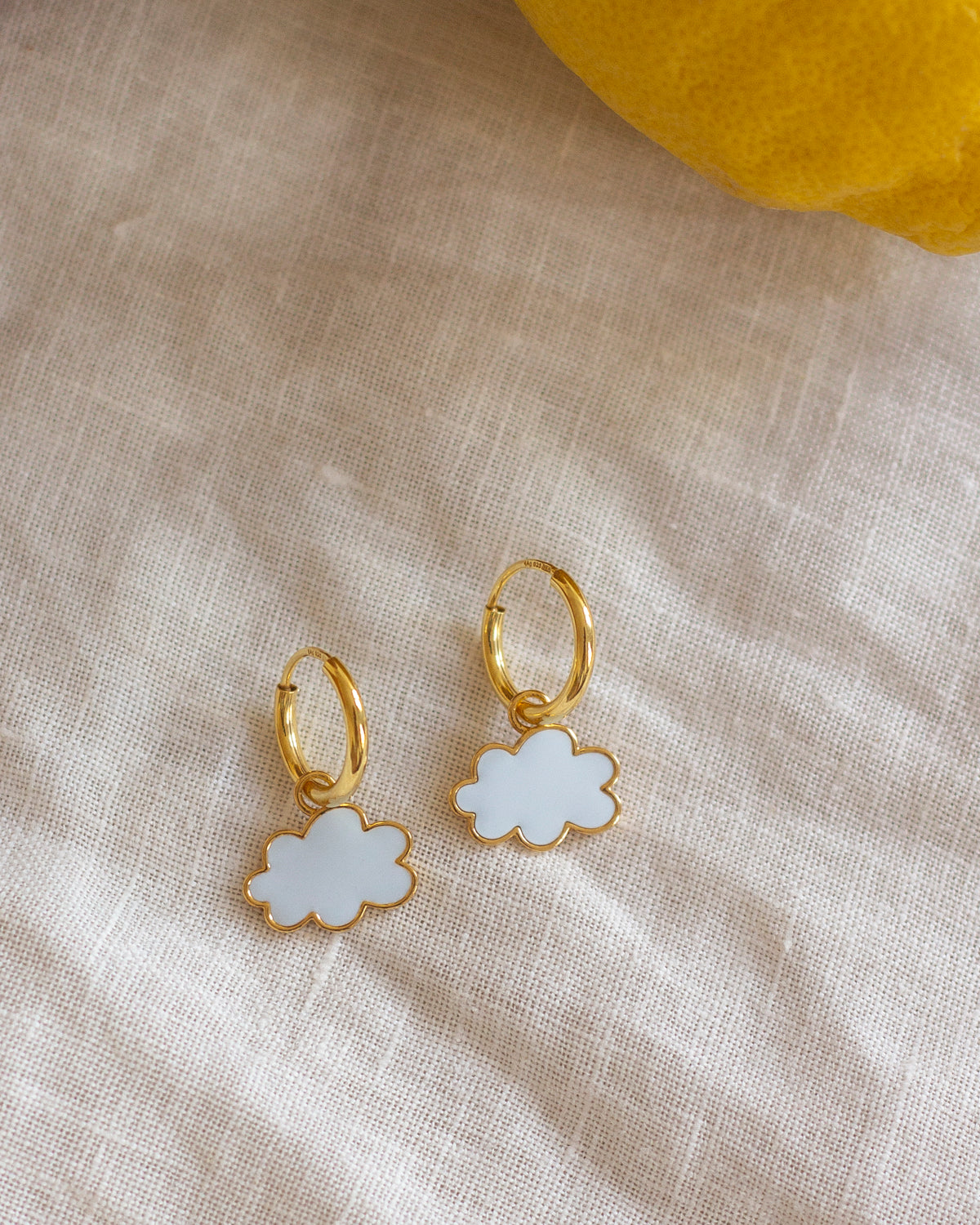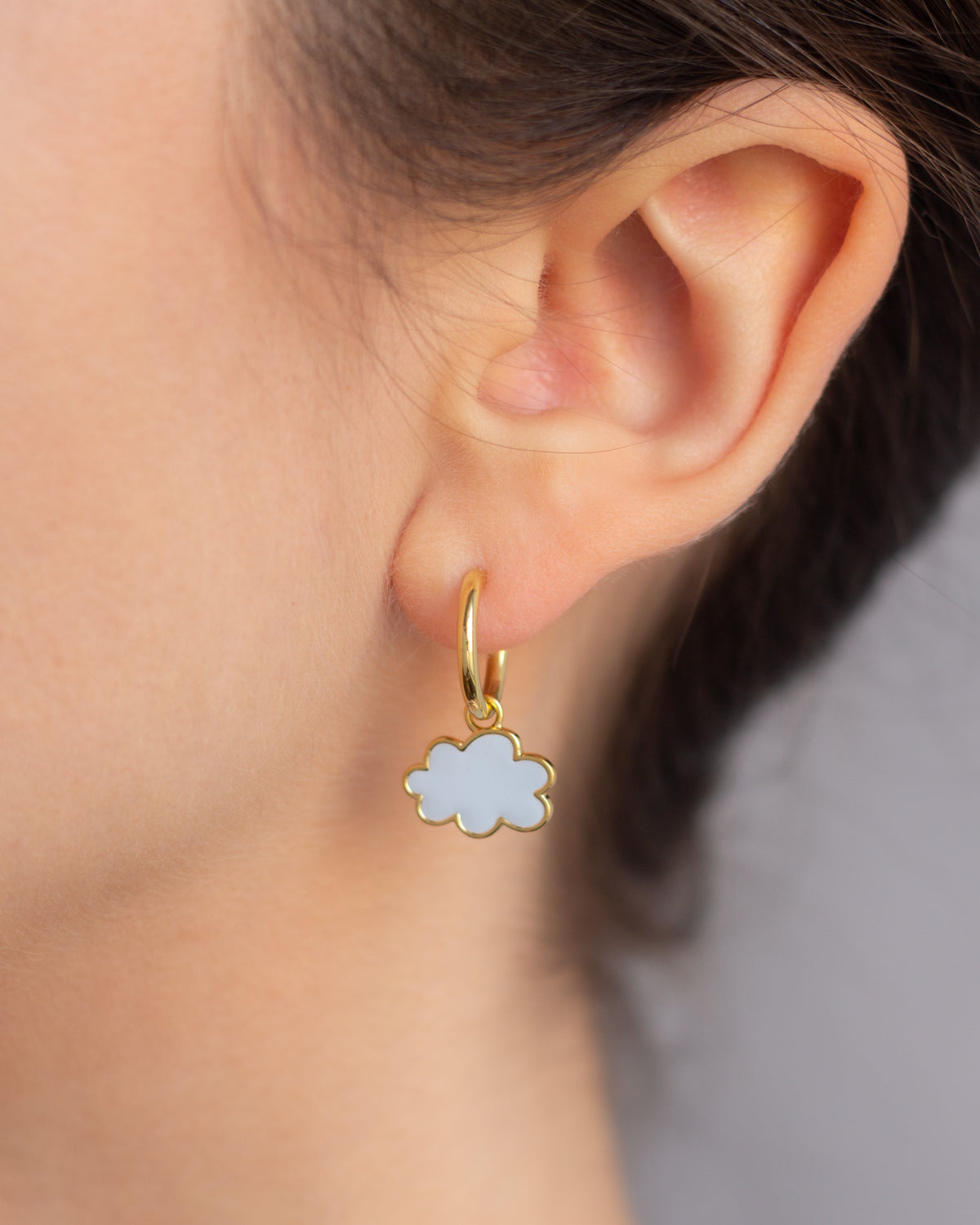 Charm Creolen Ohrringe mit Wolken Anhängern. Die Wolken Ohrringe verleihen deinem Look einen Hauch von Farbe und lassen sich wunderbar kombinieren.